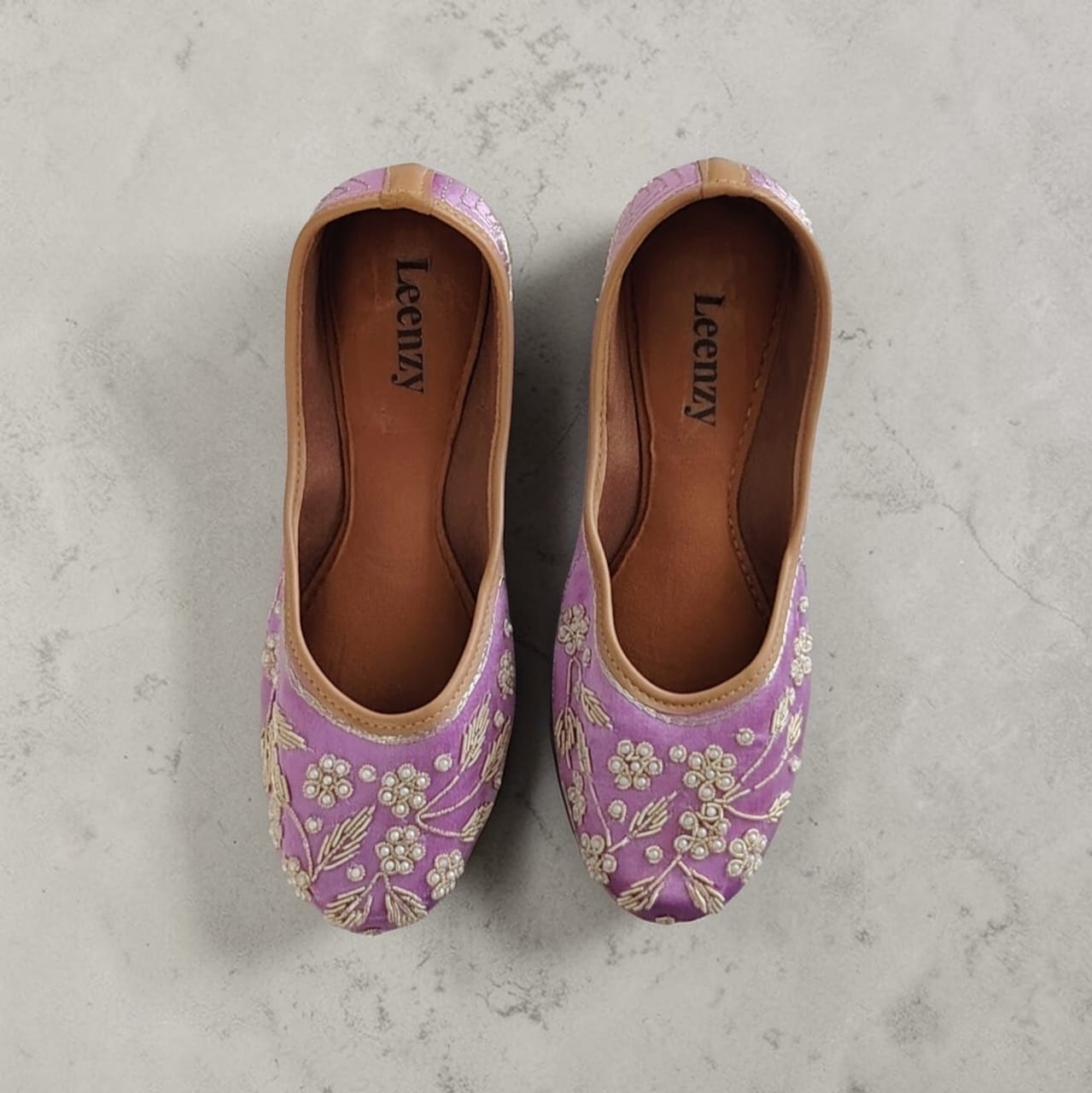 Since these juttis feature delicate handmade embroidery, handle them with love! Avoid water exposure to maintain their beauty. Slight variations in fabric and stitching make each pair truly one of a kind.