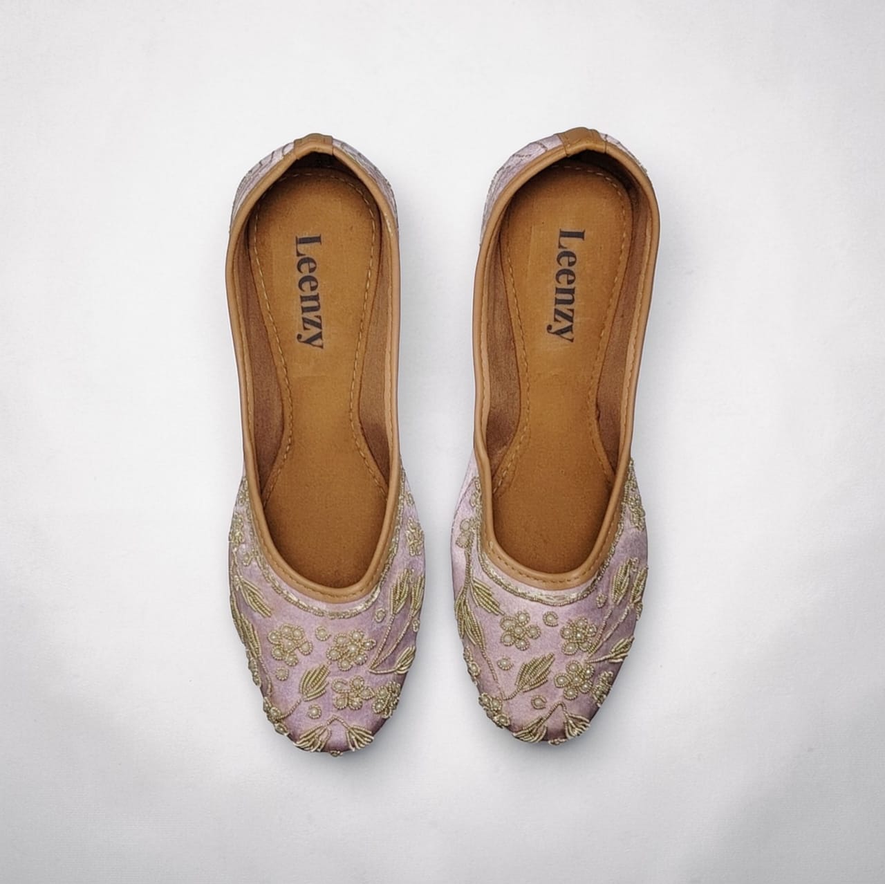 Since these juttis feature delicate handmade embroidery, handle them with love! Avoid water exposure to maintain their beauty. Slight variations in fabric and stitching make each pair truly one of a kind.