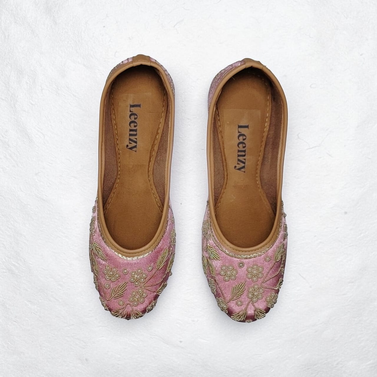 Since these juttis feature delicate handmade embroidery, handle them with love! Avoid water exposure to maintain their beauty. Slight variations in fabric and stitching make each pair truly one of a kind.