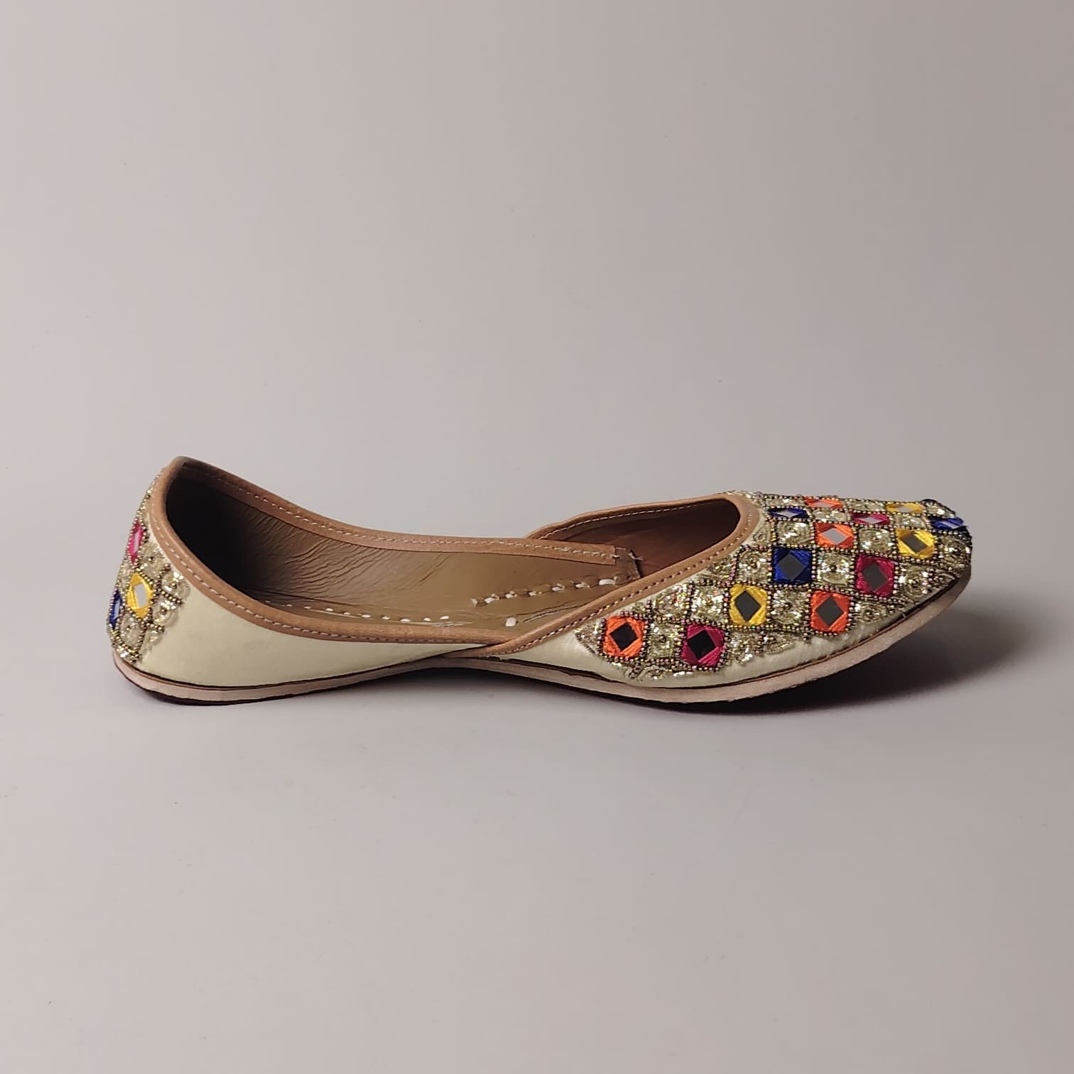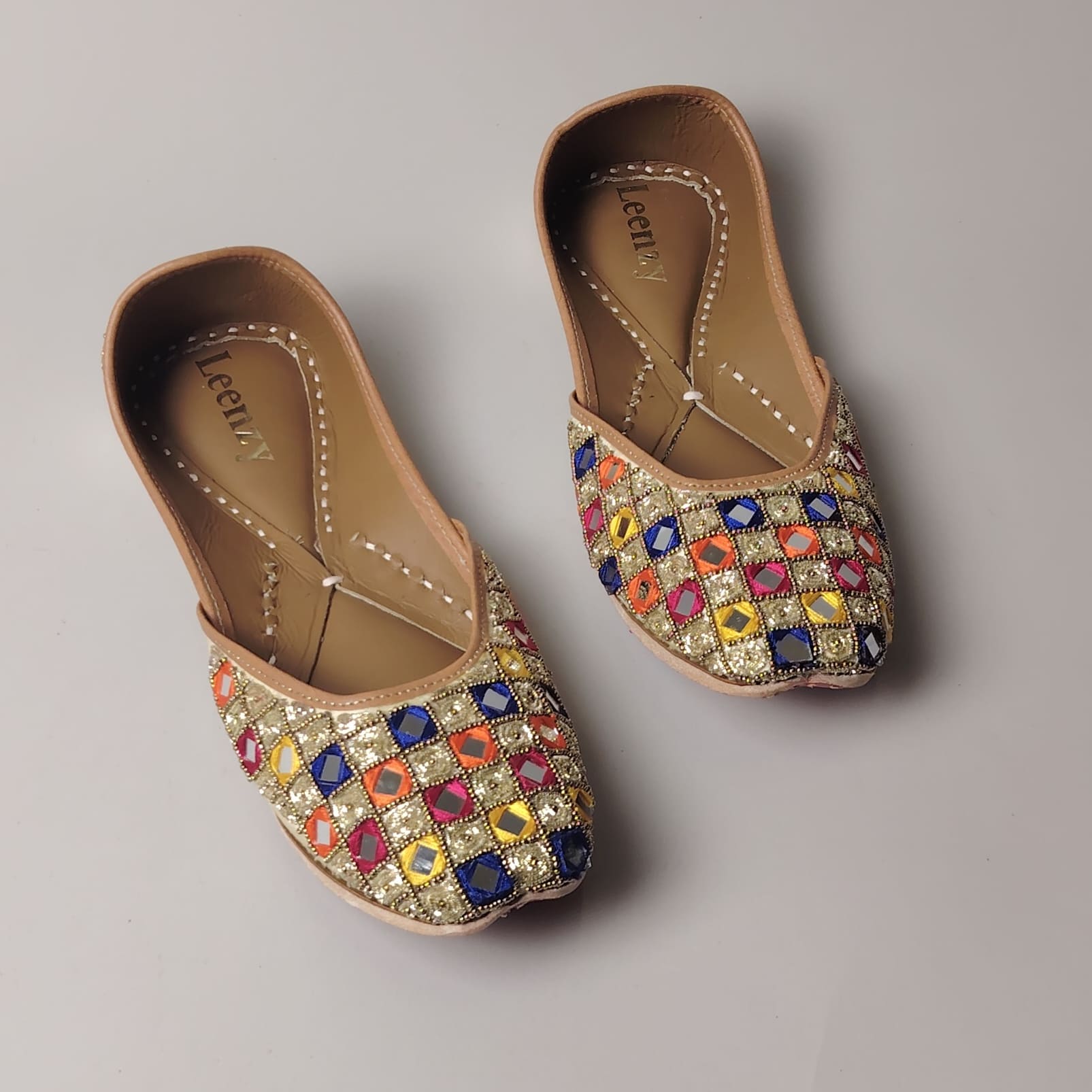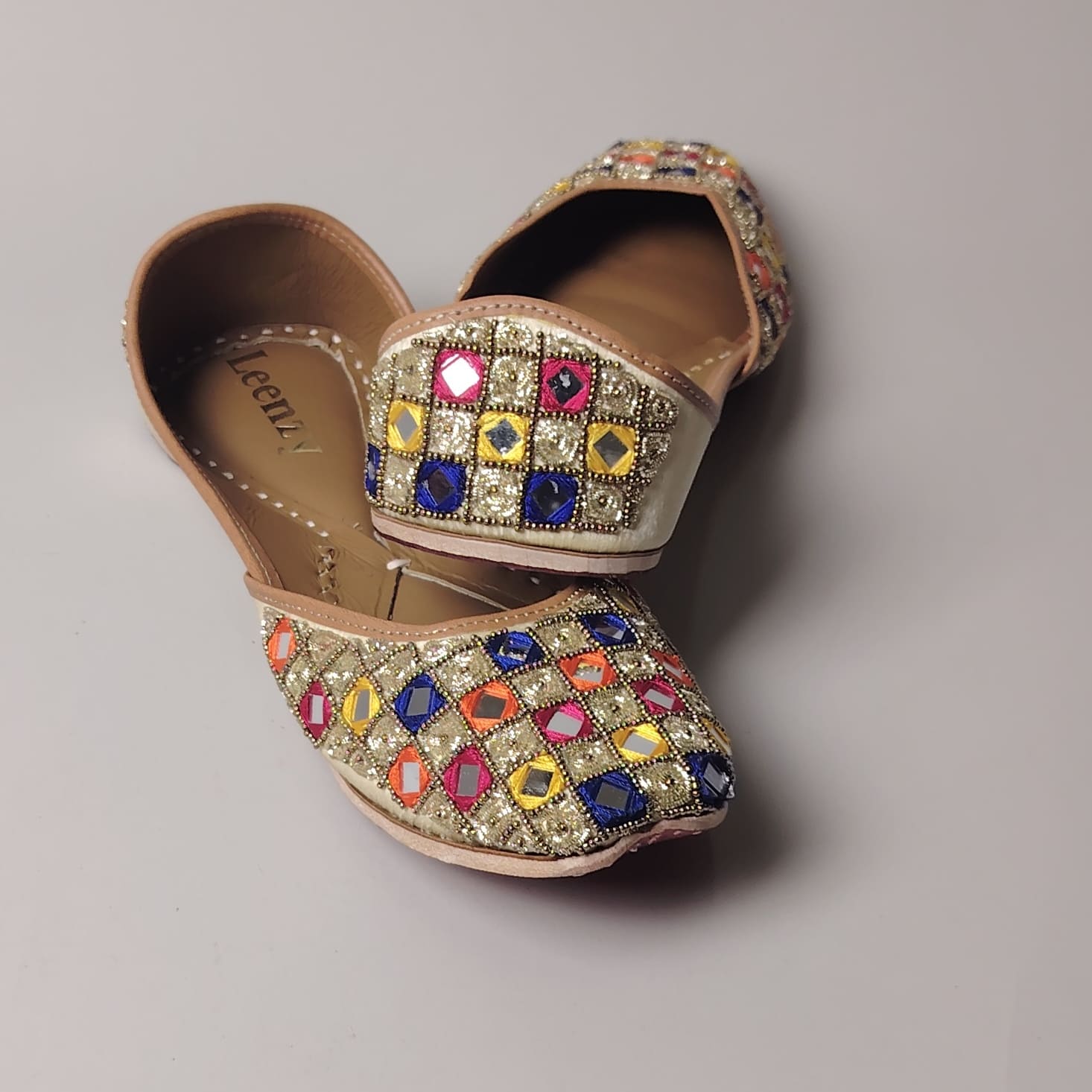 As these juttis are completely handmade, handle them with love! Avoid water exposure to preserve their delicate embroidery. Slight variations in fabric and stitching are natural and add to their unique charm.