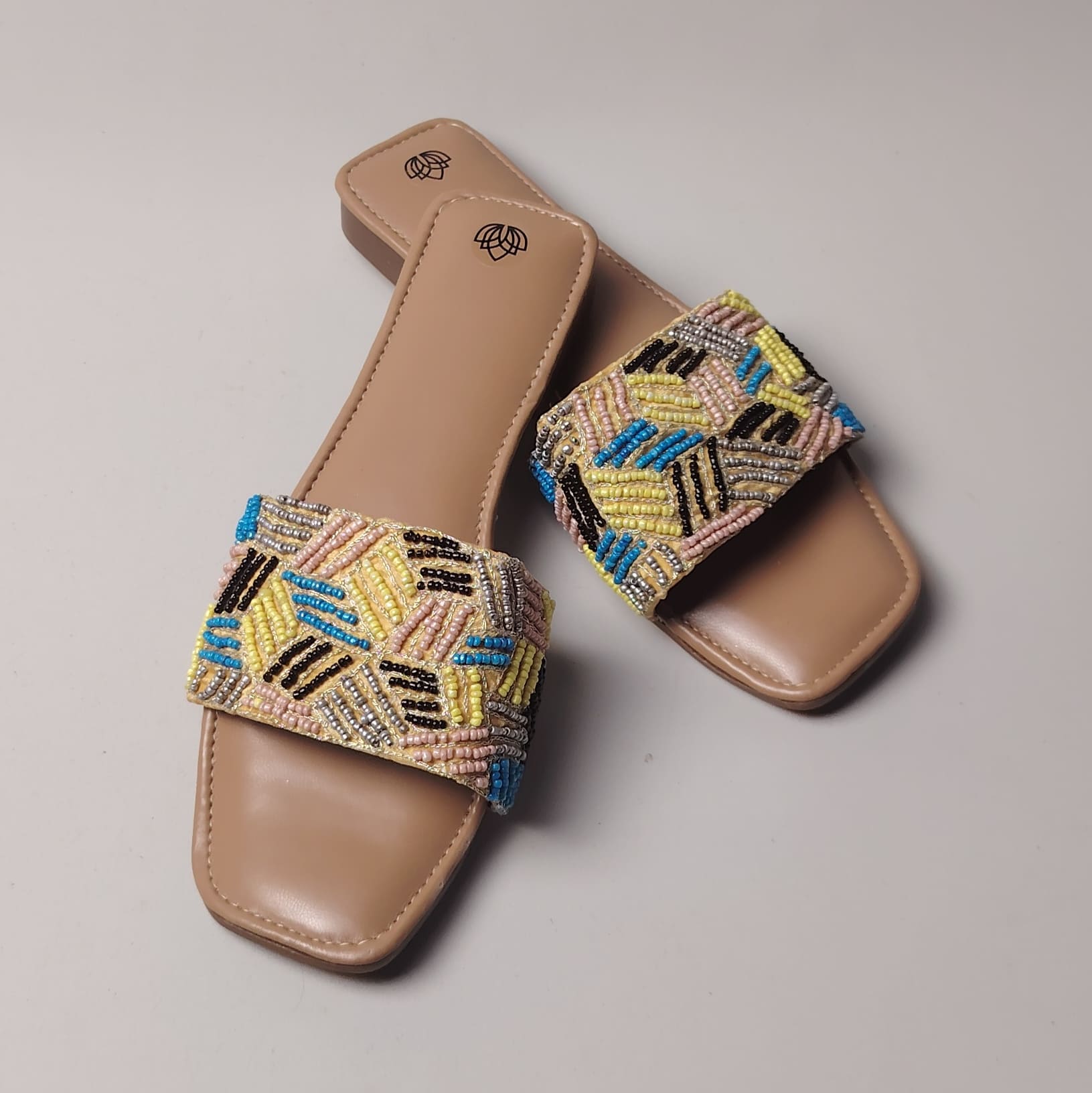 Elevate your everyday and festive looks with Leenzy’s handcrafted embellished slider sandals. Featuring an intricate hand embellished detailing, these sandals offer the perfect balance of style and comfort.